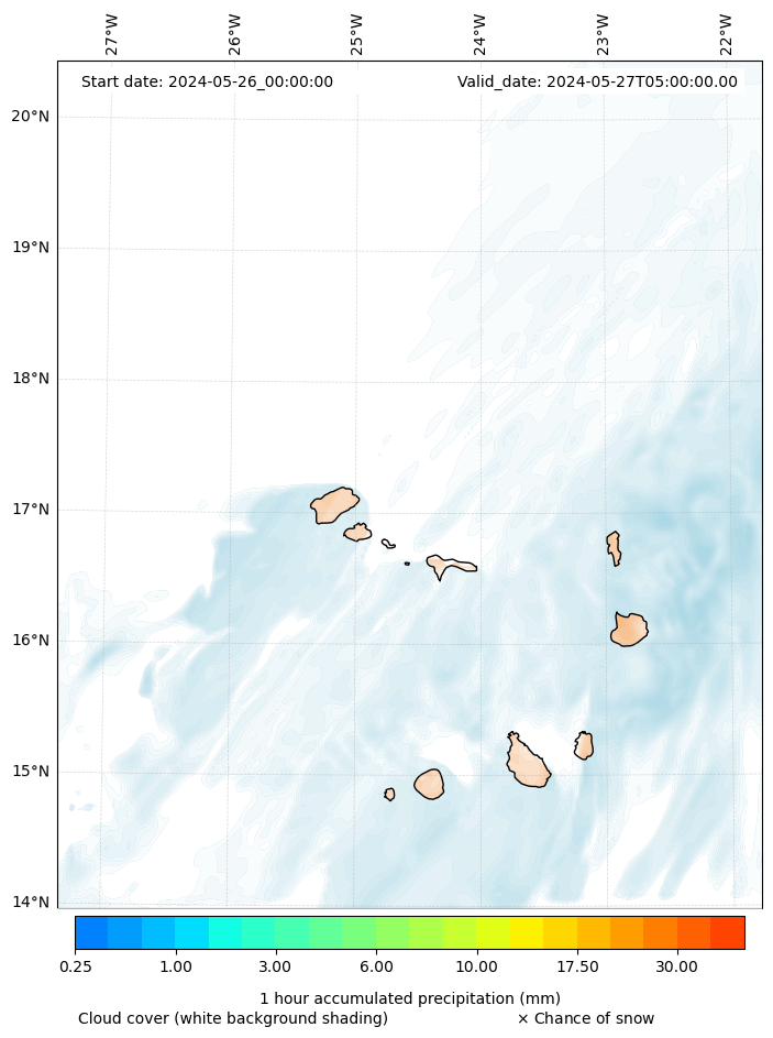 - Snow mixing ratio (g kg¯¹)