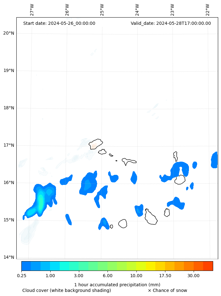 - Snow mixing ratio (g kg¯¹)