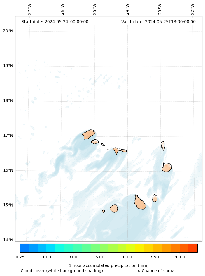 - Snow mixing ratio (g kg¯¹)