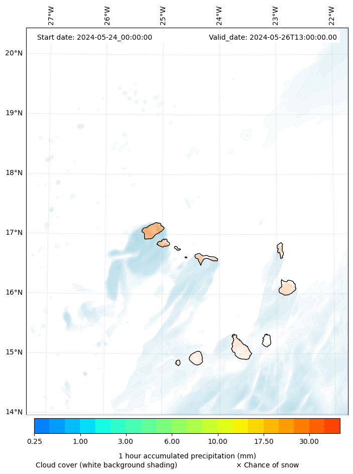 - Snow mixing ratio (g kg¯¹)