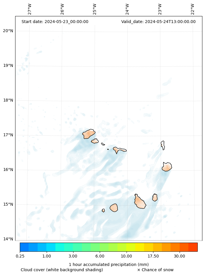 - Snow mixing ratio (g kg¯¹)