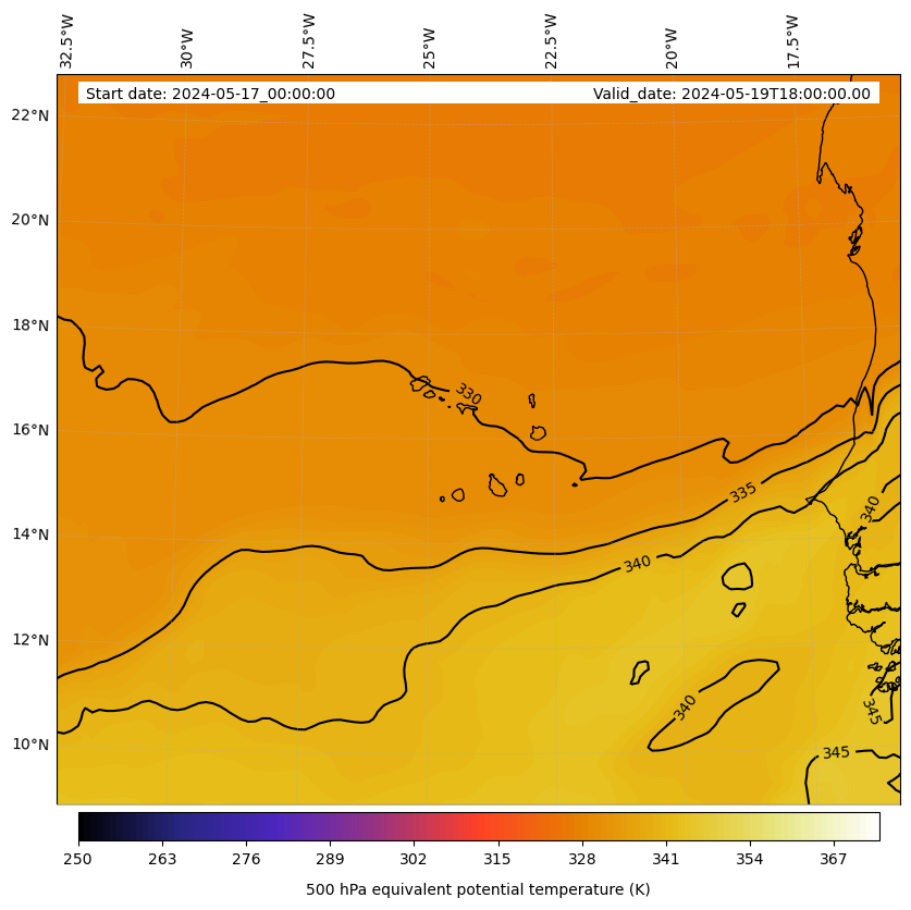 - Equivalent Potential Temperature (K)