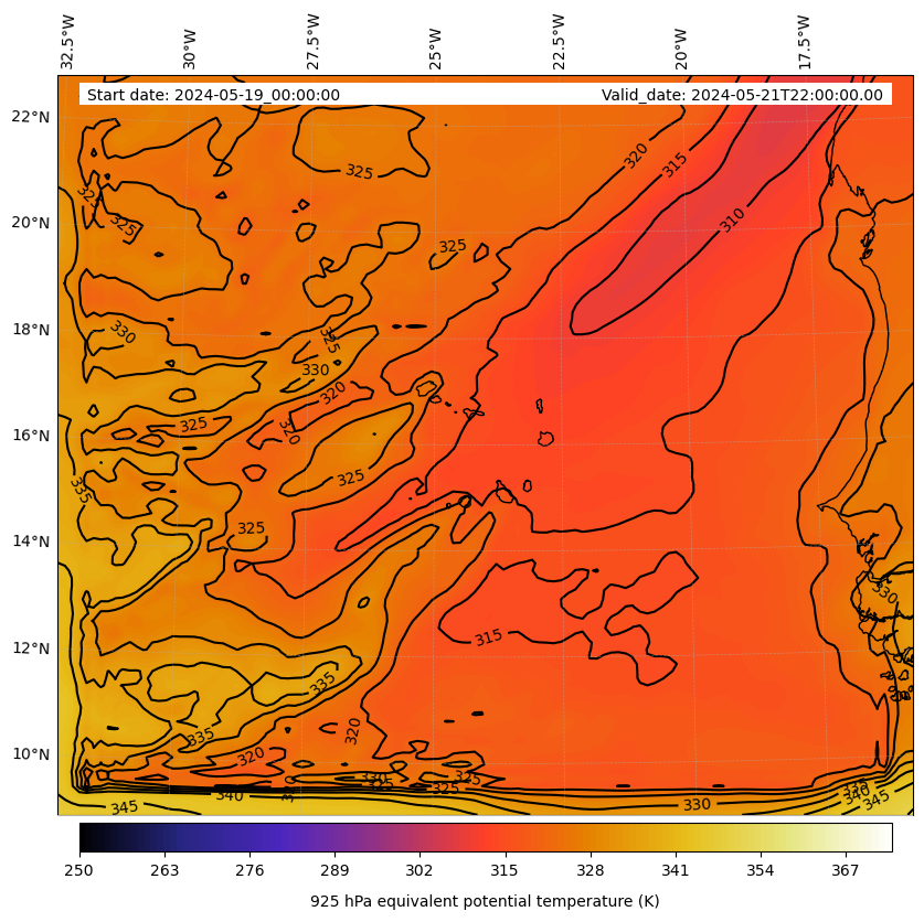 - Equivalent Potential Temperature (K)