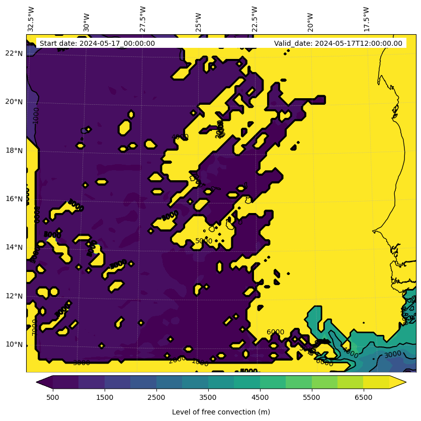- Level of free convection (m)
