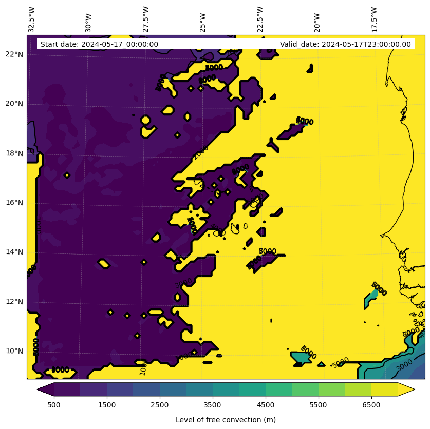 - Level of free convection (m)