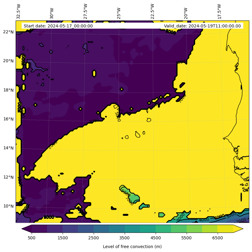 - Level of free convection (m)