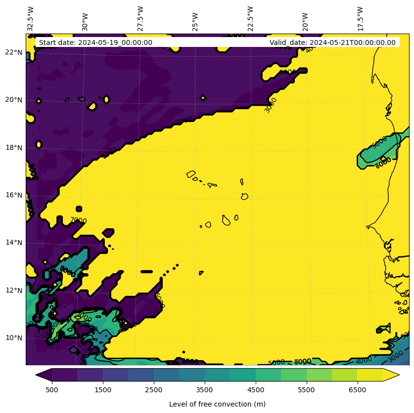 • Level of free convection (m)