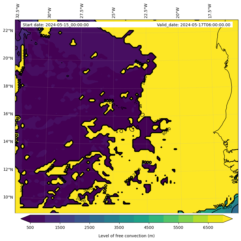 - Level of free convection (m)