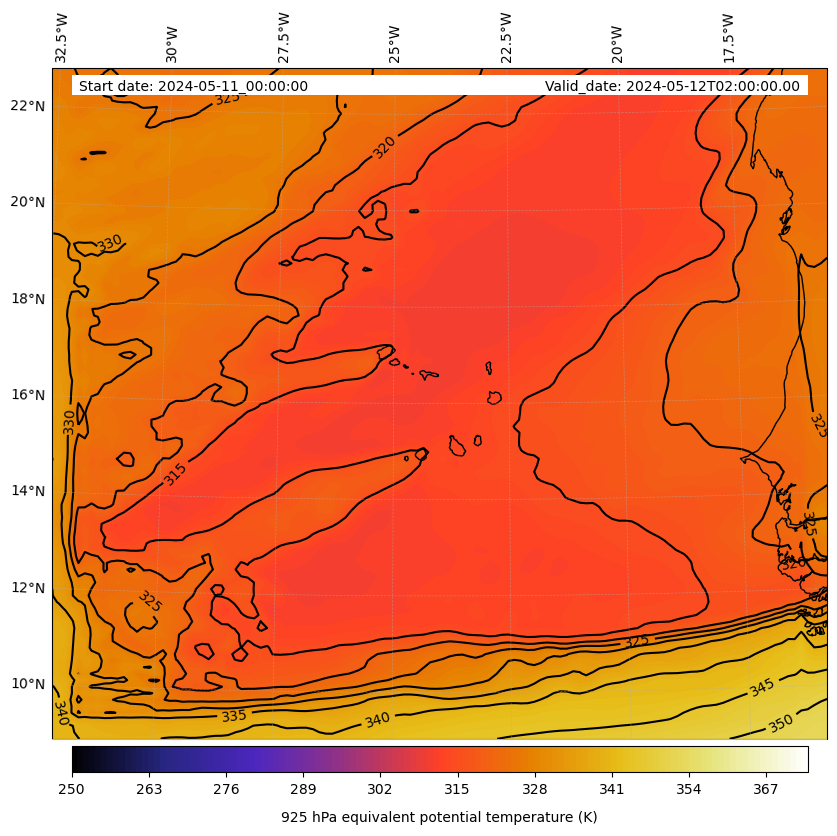 - Equivalent Potential Temperature (K)