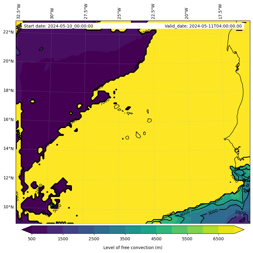 • Level of free convection (m)