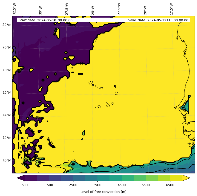 • Level of free convection (m)