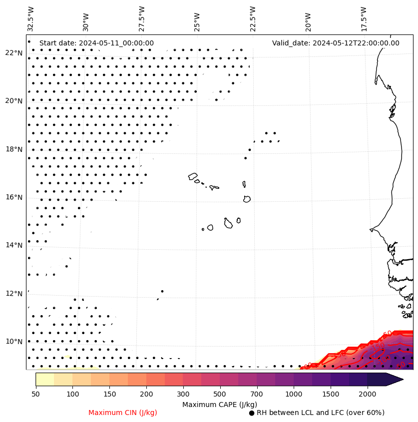 • Maximum CAPE (J/Kg)