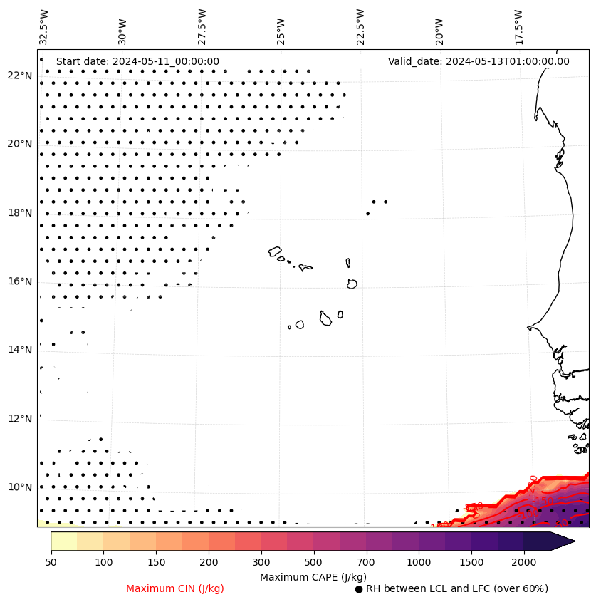 • Maximum CAPE (J/Kg)