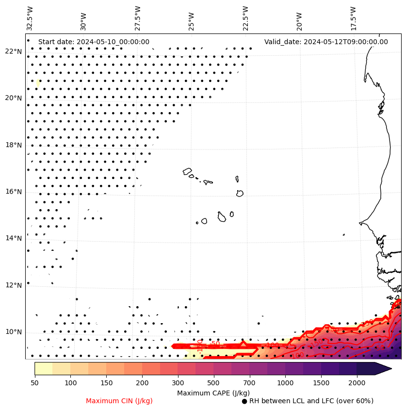 • Maximum CAPE (J/Kg)