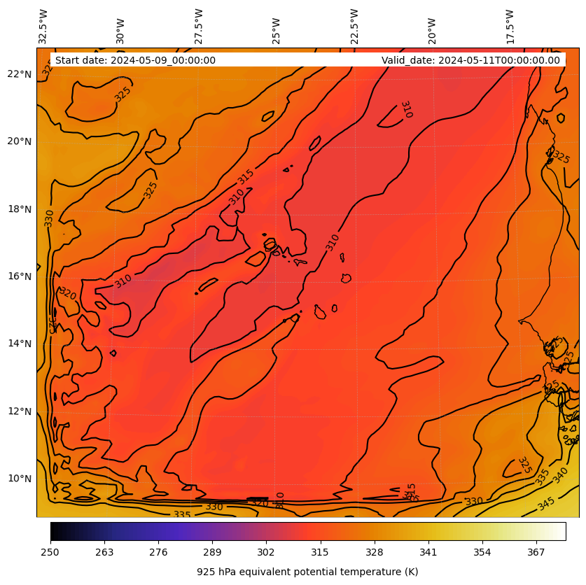 - Equivalent Potential Temperature (K)