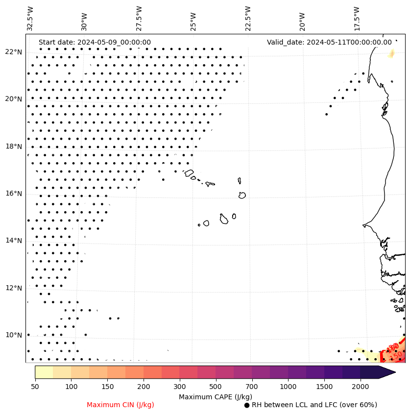 • Maximum CAPE (J/Kg)