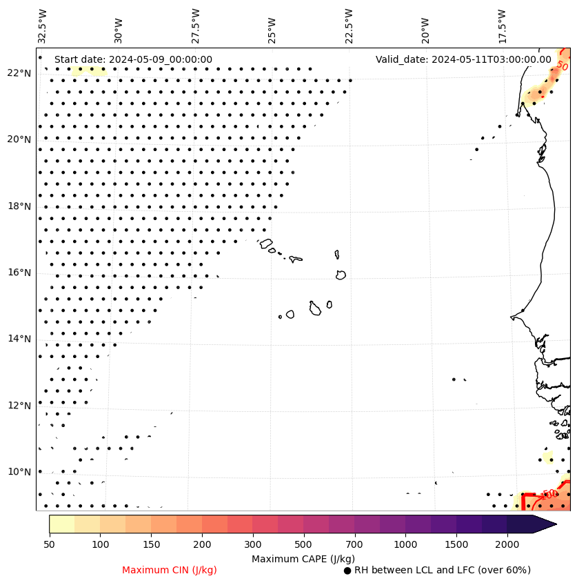 • Maximum CAPE (J/Kg)