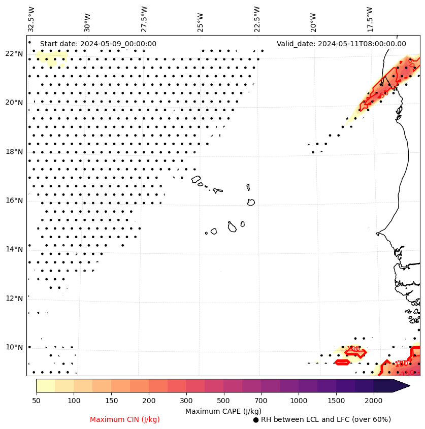 - Maximum CAPE (J/Kg)