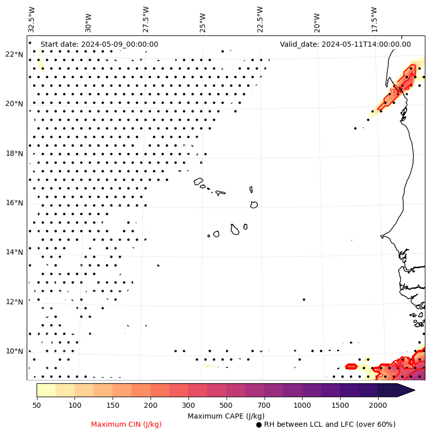 • Maximum CAPE (J/Kg)