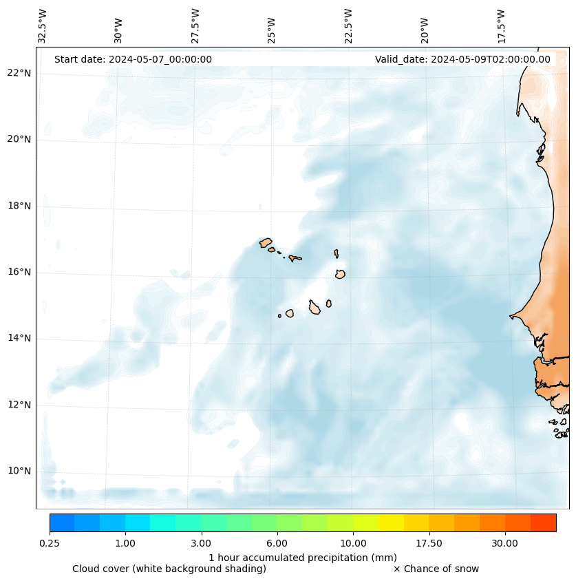 - Snow mixing ratio (g kg¯¹)