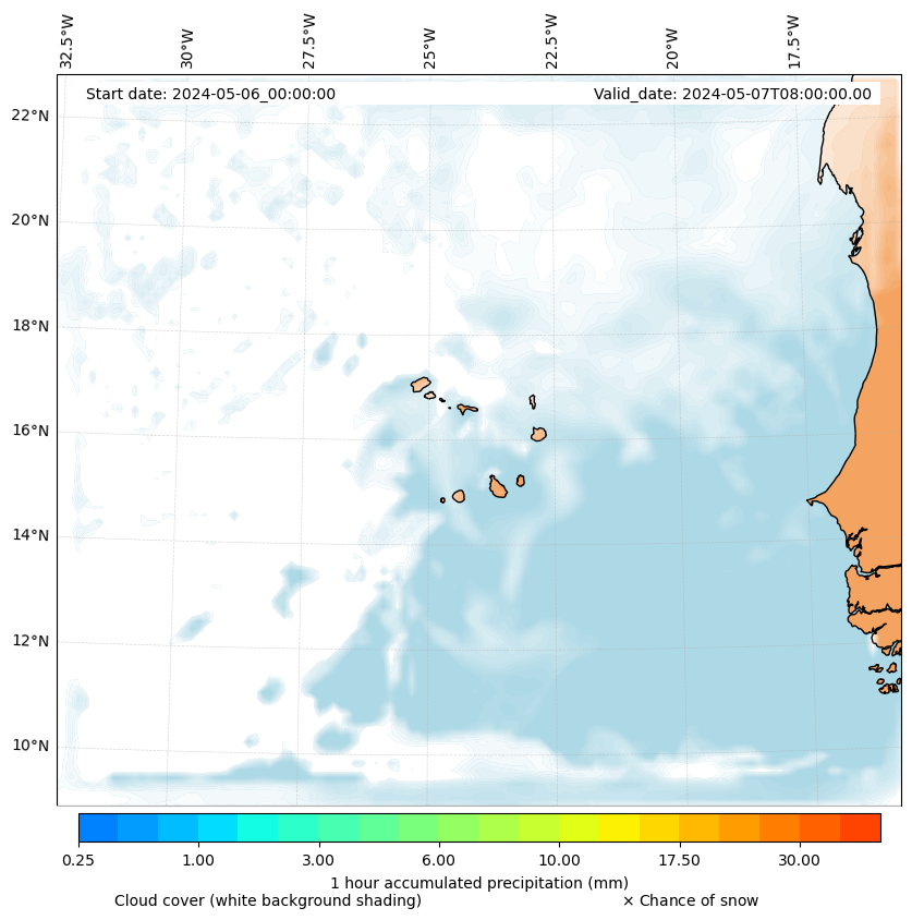 - Snow mixing ratio (g kg¯¹)