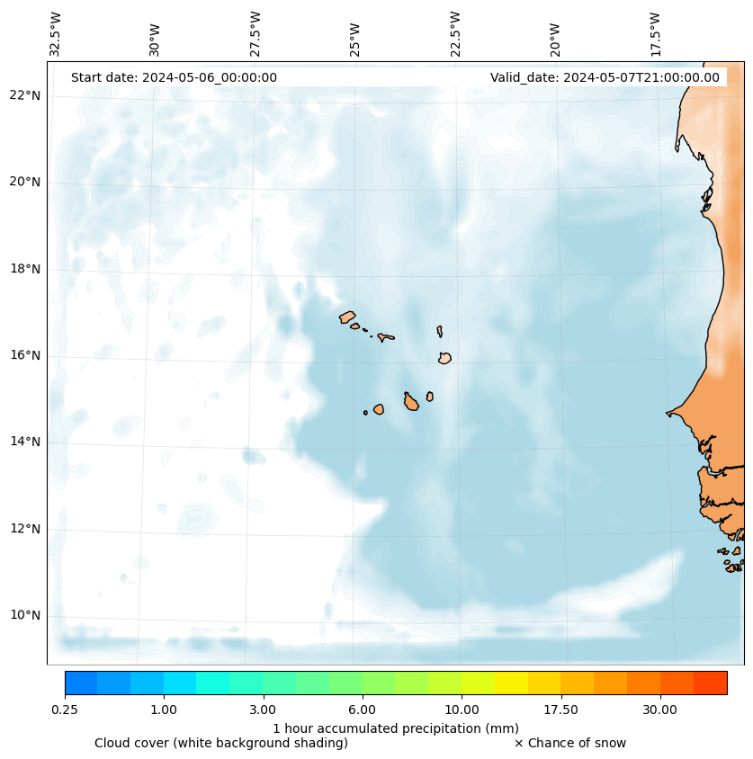 - Snow mixing ratio (g kg¯¹)
