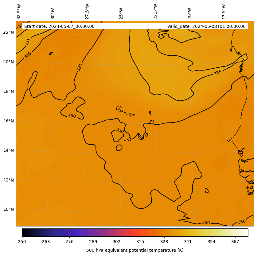 - Equivalent Potential Temperature (K)
