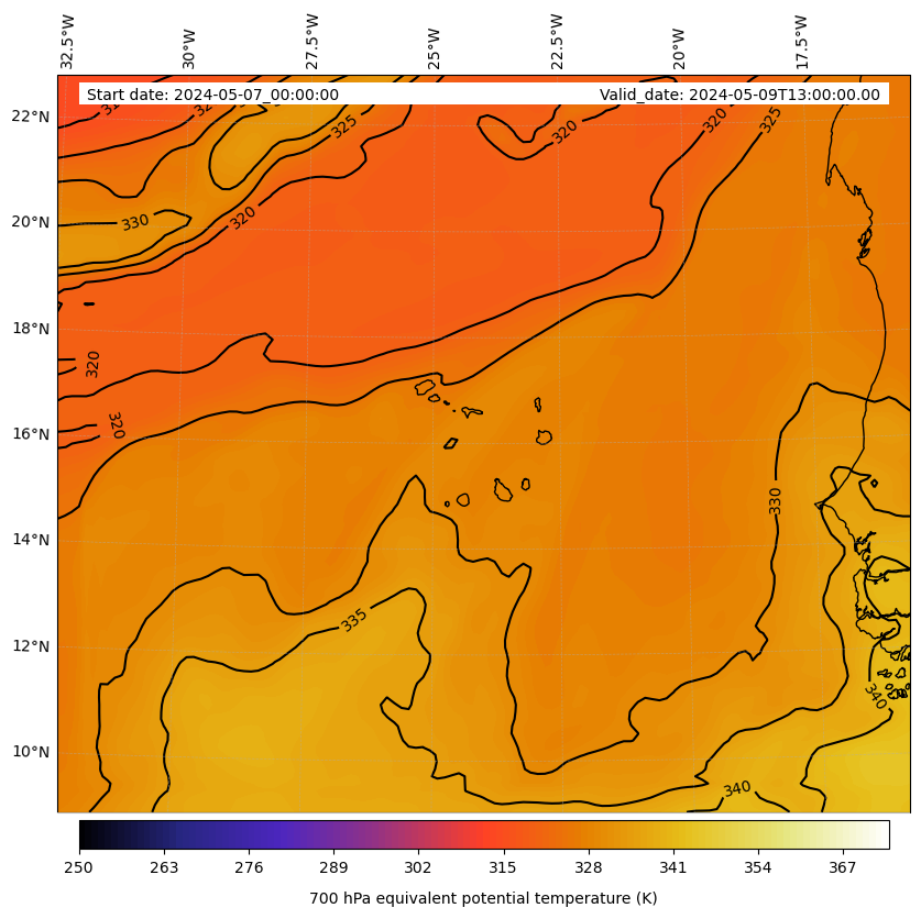 - Equivalent Potential Temperature (K)