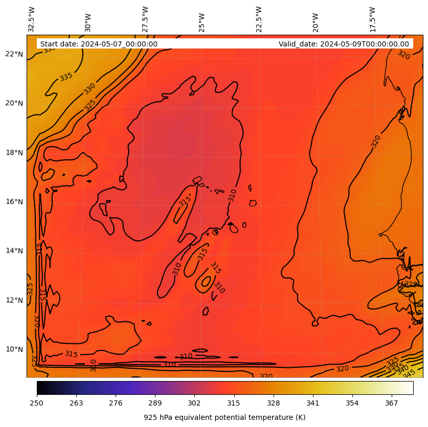 - Equivalent Potential Temperature (K)