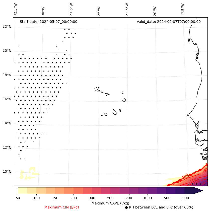 - Maximum CAPE (J/Kg)