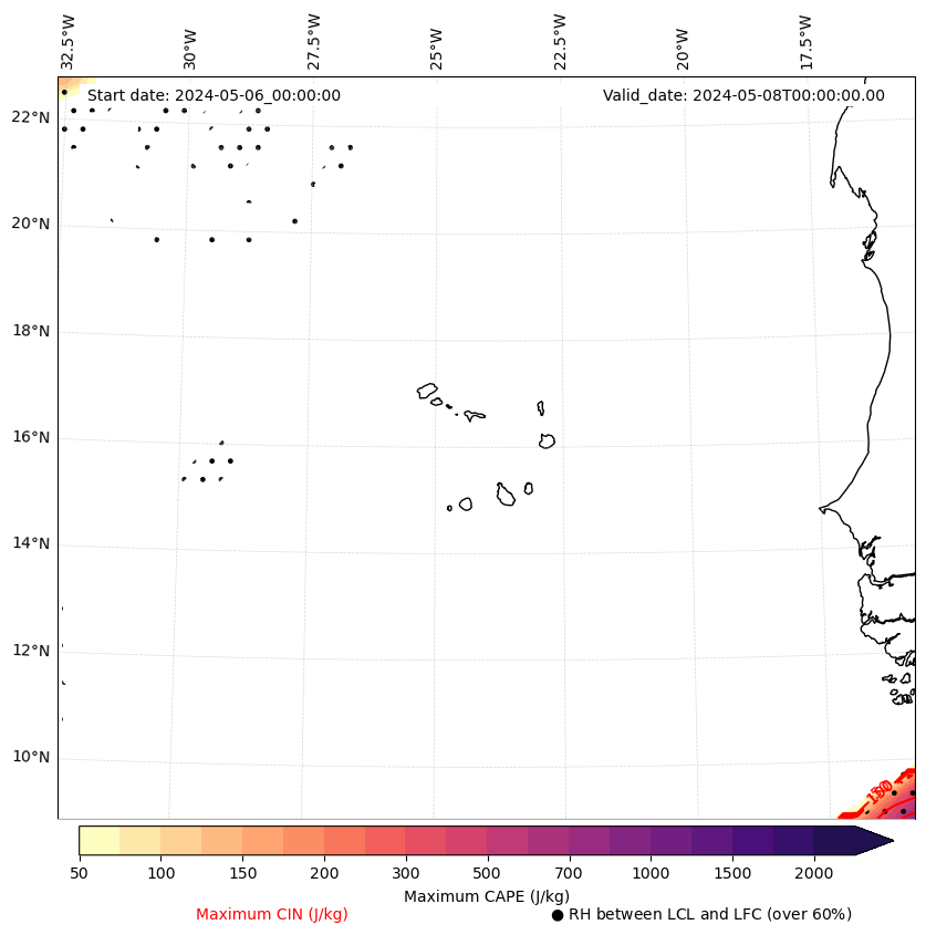 - Maximum CAPE (J/Kg)