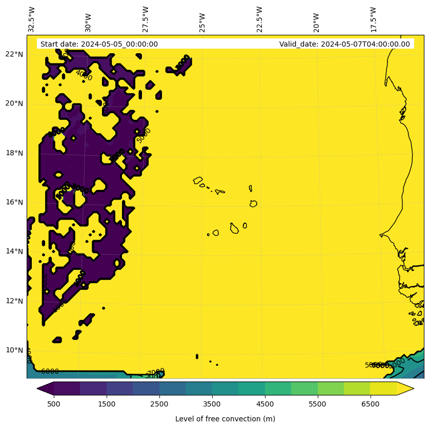 • Level of free convection (m)