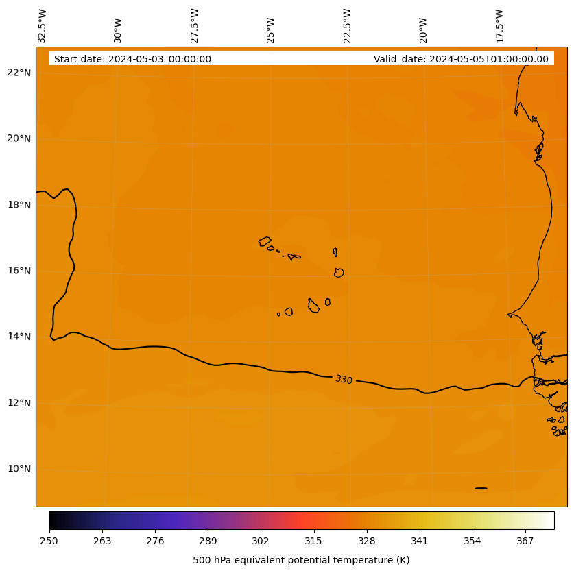 - Equivalent Potential Temperature (K)