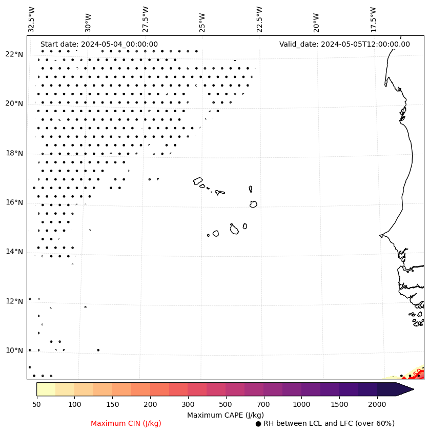 • Maximum CAPE (J/Kg)
