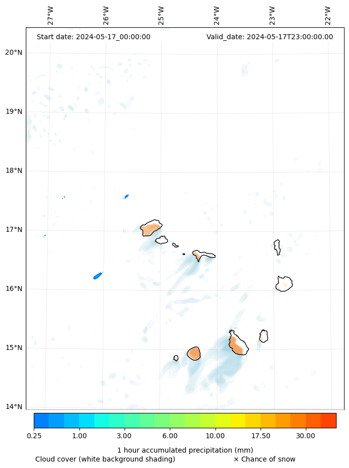- Snow mixing ratio (g kg¯¹)