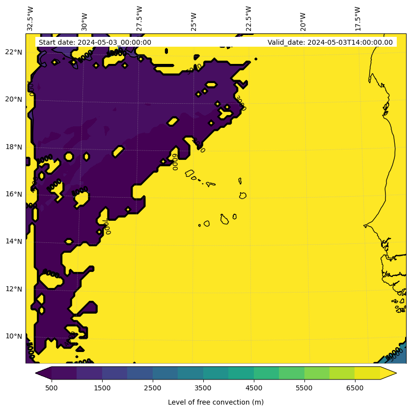 • Level of free convection (m)