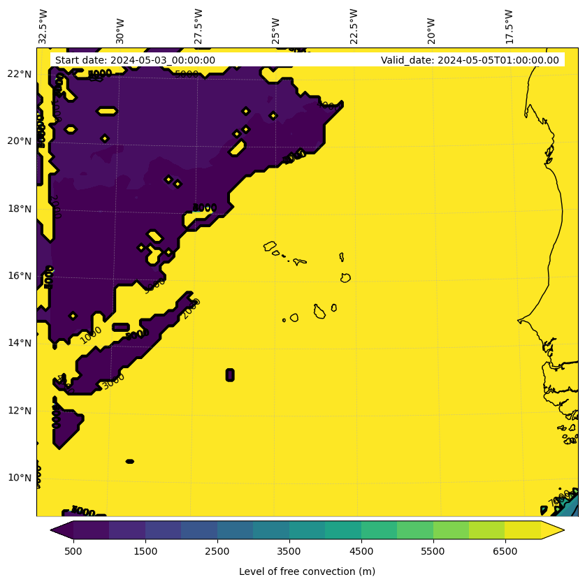 - Level of free convection (m)