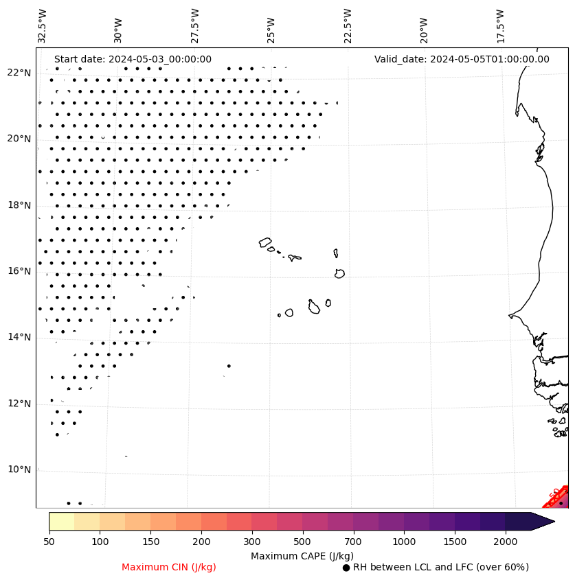 • Maximum CAPE (J/Kg)