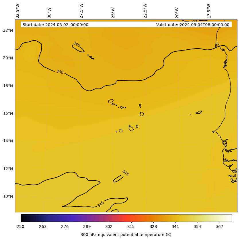 - Equivalent Potential Temperature (K)