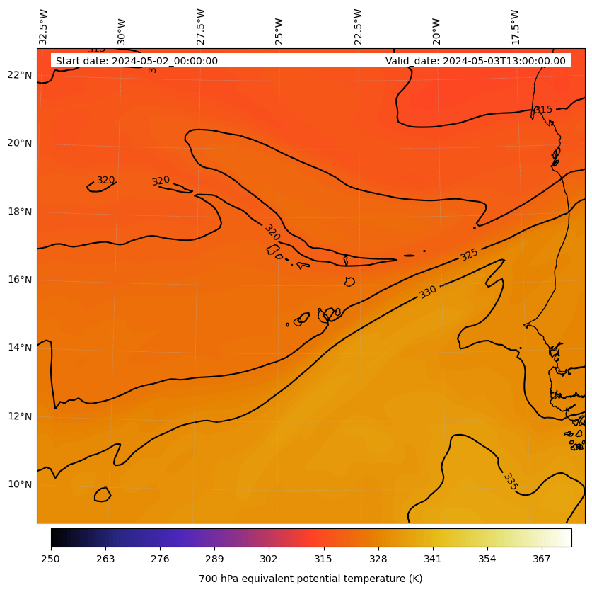 - Equivalent Potential Temperature (K)