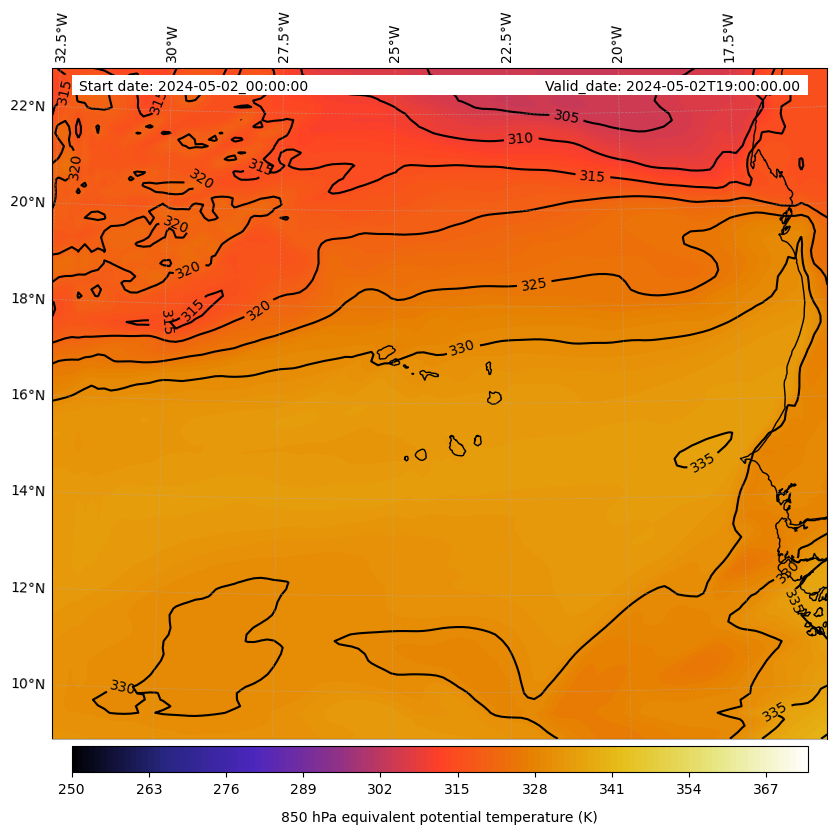 - Equivalent Potential Temperature (K)