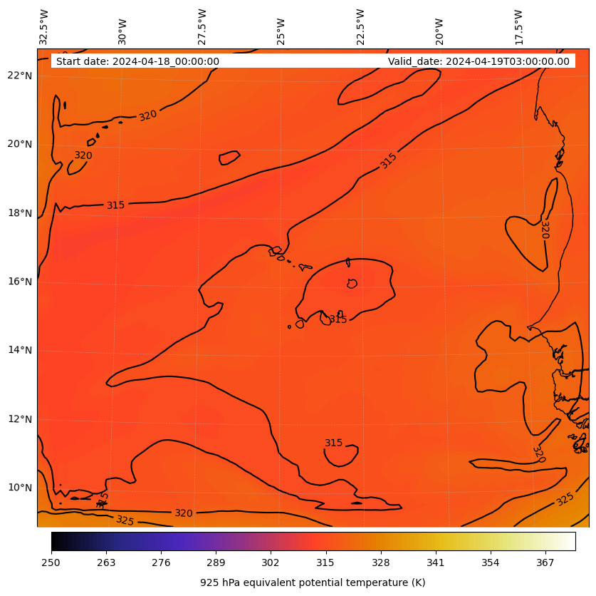 - Equivalent Potential Temperature (K)