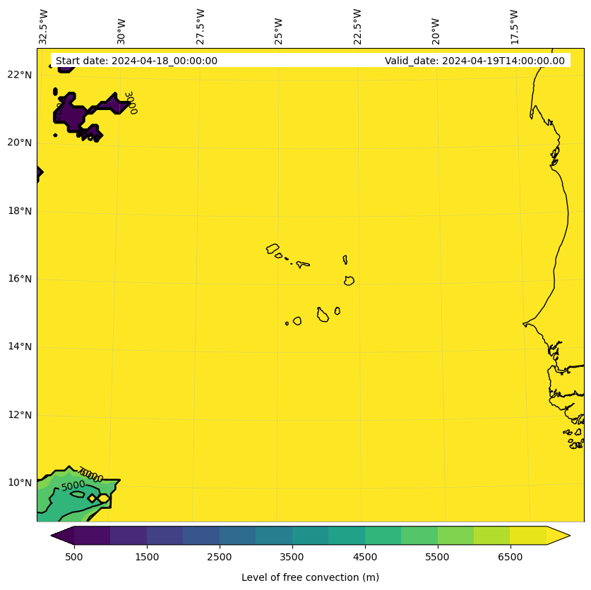 - Level of free convection (m)