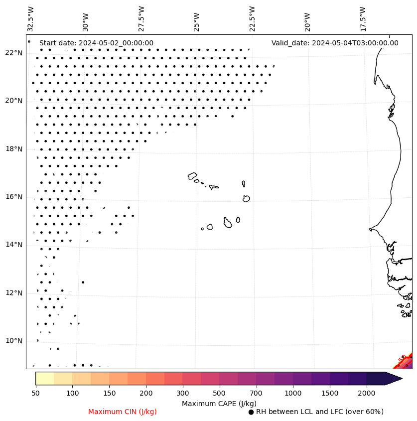 • Maximum CAPE (J/Kg)
