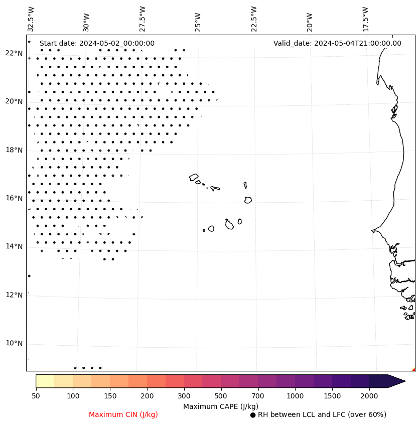 - Maximum CAPE (J/Kg)