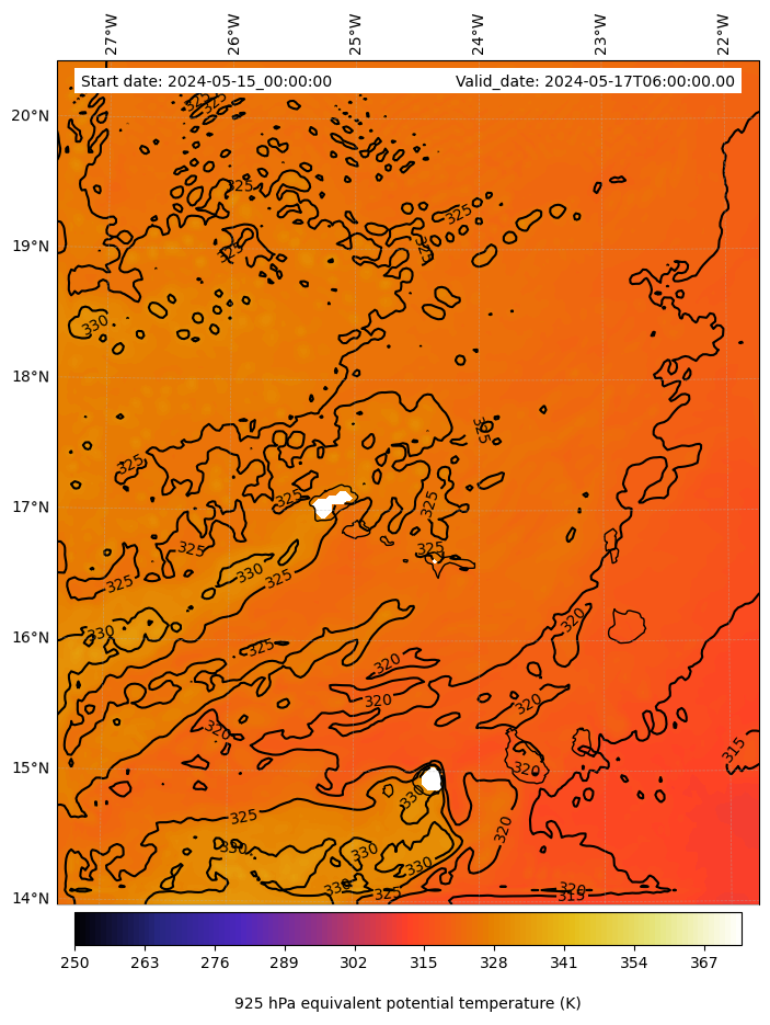 - Equivalent Potential Temperature (K)