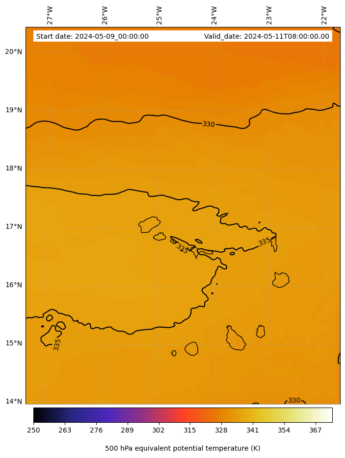 - Equivalent Potential Temperature (K)