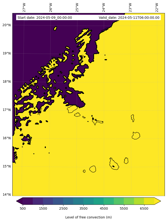 - Level of free convection (m)