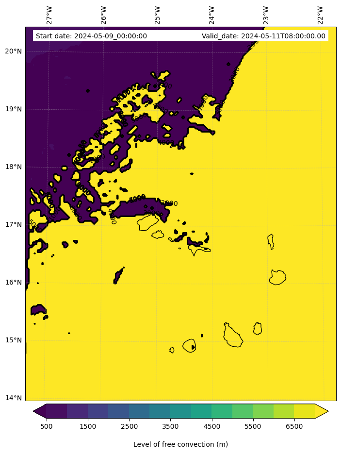 - Level of free convection (m)