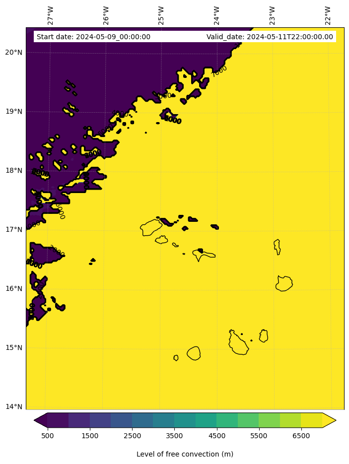- Level of free convection (m)